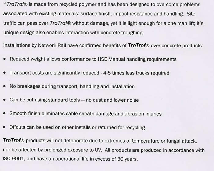 An innovative project undertaken by One-On’s highly skilled labour force. One-On were selected by Network Rail to trial a new form of C19 trough and lid designed and manufactured with plastic polymer. 400metres of trough route installation was videoed and assessed alongside usual concrete troughing installation in order to evaluate possible cost savings on installations due to the reduced weight, and durability of the trough and lid.